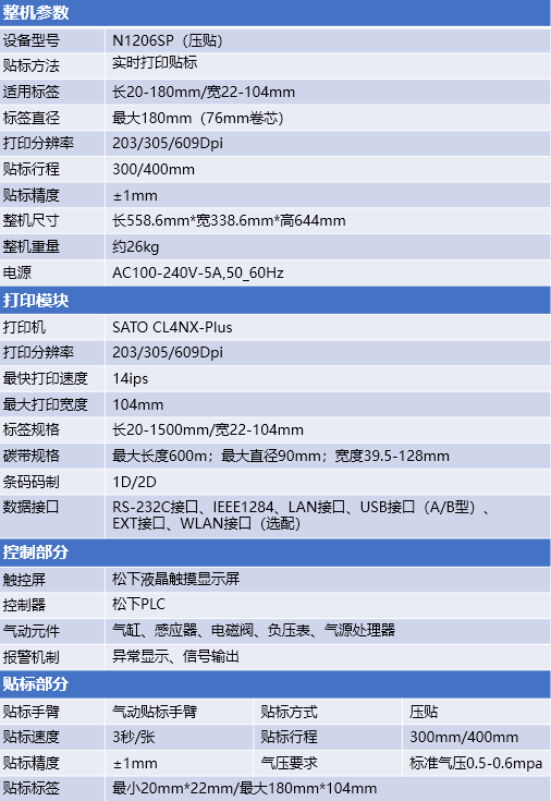 AITGM 實時打印貼標機屬于功能結合型設備,以德國主機為 基礎研發了現在的 AITGM 實時打印貼標系統,打印主機采用了 API 系列, 貼標手臂為:A-TC100-4 兩者所組成。該設備廣泛應用于電子、家電、機械、食品、汽車、化工及物流等行業。由于工業自動化的不斷發展和進步,N1206產品主要為完成自動化產線制造公司制造的包裝產線中貼標環節的任務,提供我們的打印貼標設備以滿足整個產線的完整工作流程。
