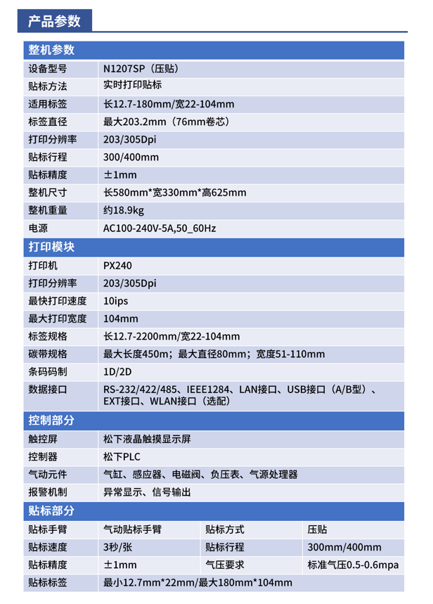 N1207SP 打印貼標機,基于工業級標簽打印機PX240S 研發的打印貼標一體機。體積小、堅固耐用。